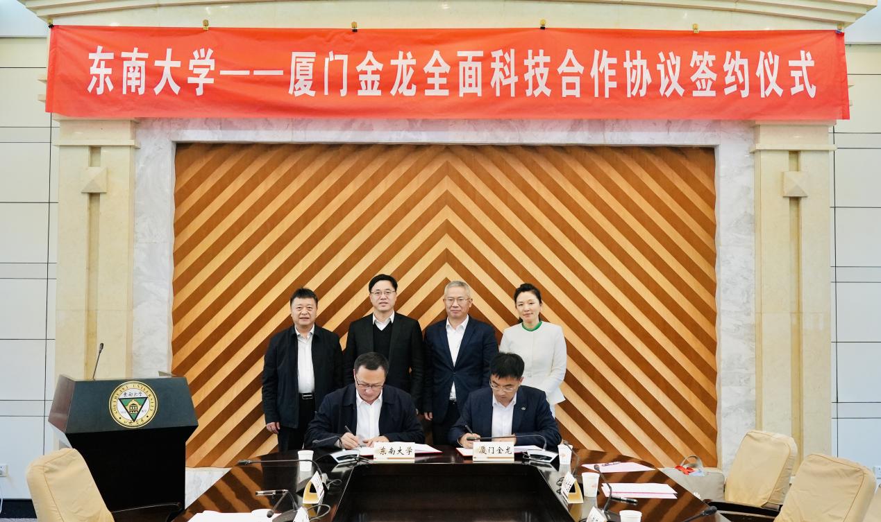 2023年4月1日,厦门金龙联合汽车工业有限公司党委书记、董事长刘志军一行到必威betway中文官网访问,双方进行了合作洽谈并签署了全面科技合作协议。必威betway中文官网常务副校长吴刚、江苏省工信厅产业转型升级处(省汽车工业办公室)处长熊斌谦、中国汽车工程学会副秘书长赵莲芳,学校各相关职能部门及院系有关负责同志参加了签约仪式。